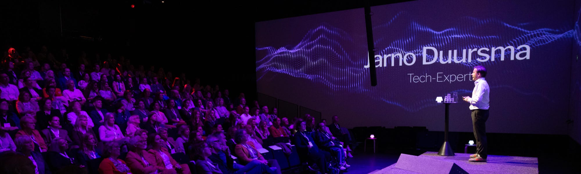 Tegelijkertijd blijf ik scherp op de inhoud. Geen vage beloftes of technohype, maar een realistisch verhaal met concrete voorbeelden. Ik laat zien wat AI nú kan, waar we naartoe gaan, waar de grenzen liggen en wat het betekent voor mensen in de zaal.